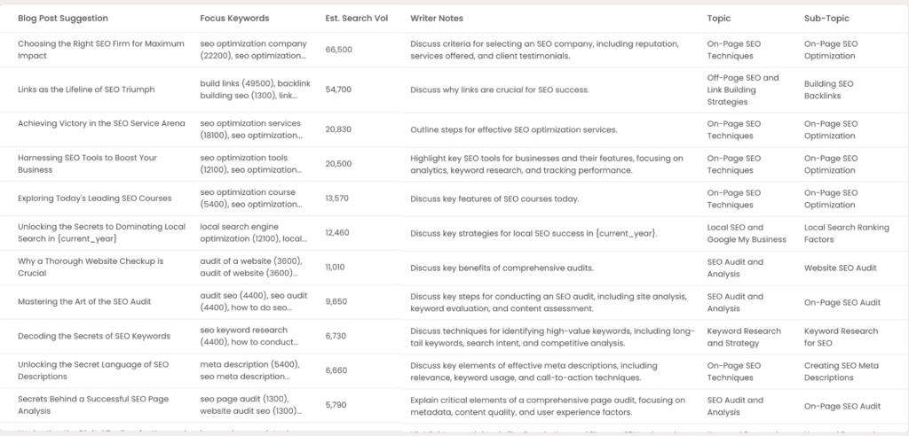 - Prioritize Keyword Topics: Rank your keyword topics based on their search volume and KD. Prioritize those with the highest search volume and a KD score that your website is capable of ranking for. This priority list will help you develop your content calendar while considering the potential performance of each content piece.
